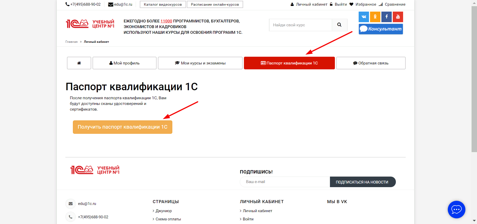 Получить паспорт 1С можно в личном кабинете, в разделе Паспорт квалификации 1С.